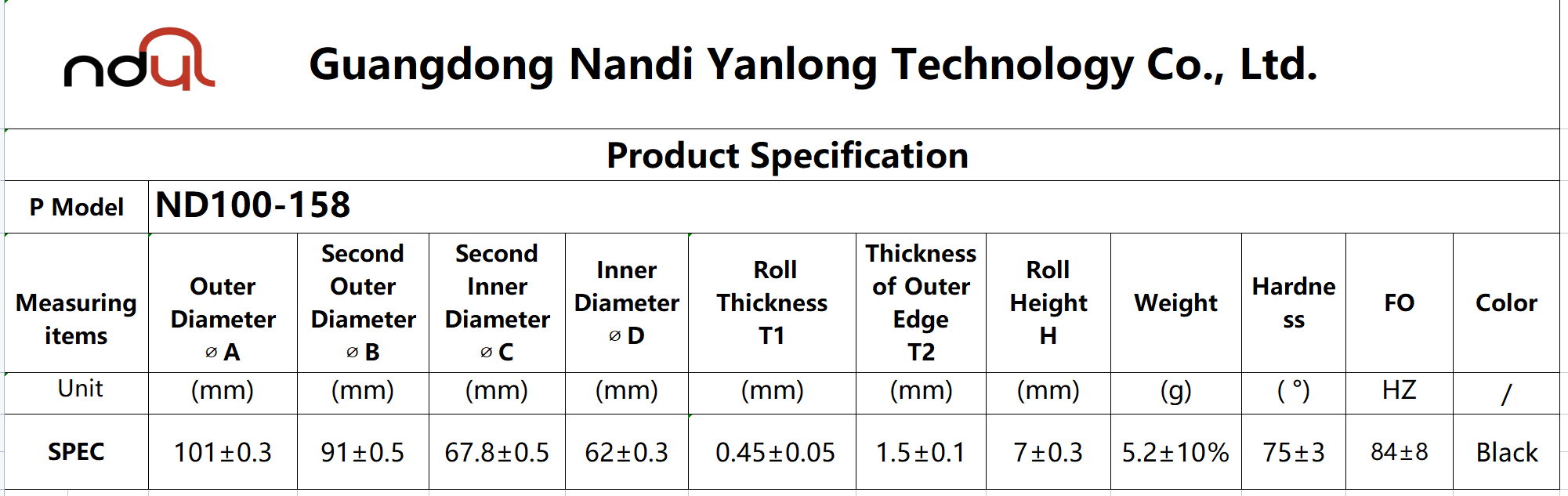 | Hardness | 45°-85° | 45°-85° | 45°-85° | 45°-85° | 55°-75° |