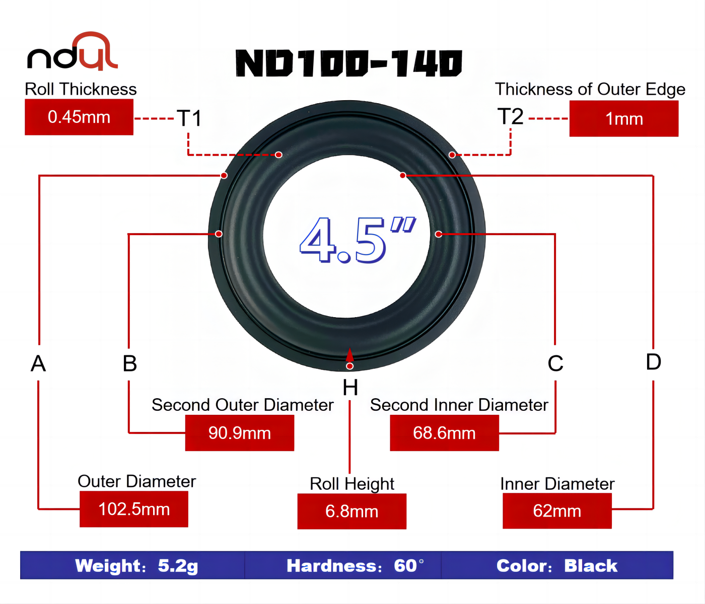 جودة الصوت المحيطي لها تأثير هائل على استجابة تردد مكبر الصوت.تؤثر صلابة الشاطئ بشكل مباشر على تردد السماعة.تتحمل الأجزاء المطاطية أيضًا عمرًا طويلًا، ما يقرب من 20 إلى 30 عامًا.