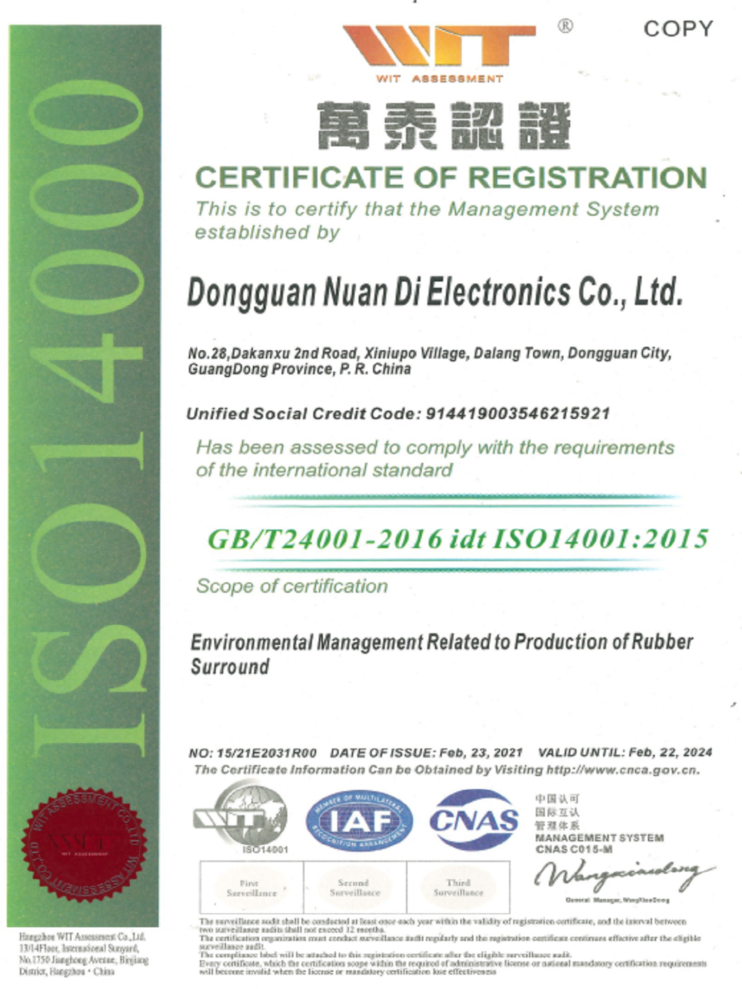 Quality System Certification EMS of Production of Rubber Surround IATF16949 ISO14001 High-tech enterprise certification ISO9001 Products Patents Company Badge