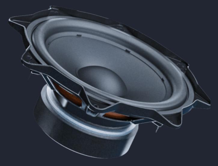 Se utiliza en todo tipo de parlantes, como parlantes para automóvil, parlantes para TV, parlantes para cine en casa, parlantes de pared, parlantes para techo, parlantes inalámbricos, etc.