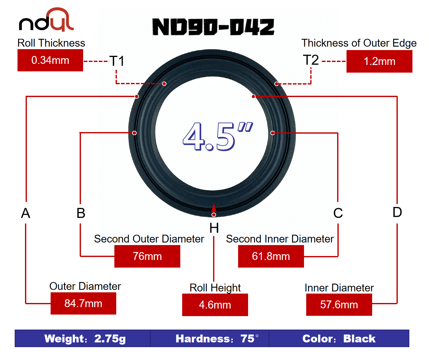 Entourage en caoutchouc pour haut-parleur 4,5″ – Bord en caoutchouc EPDM